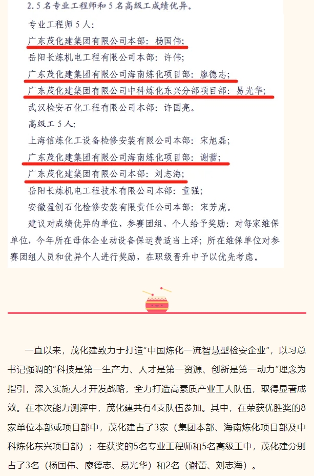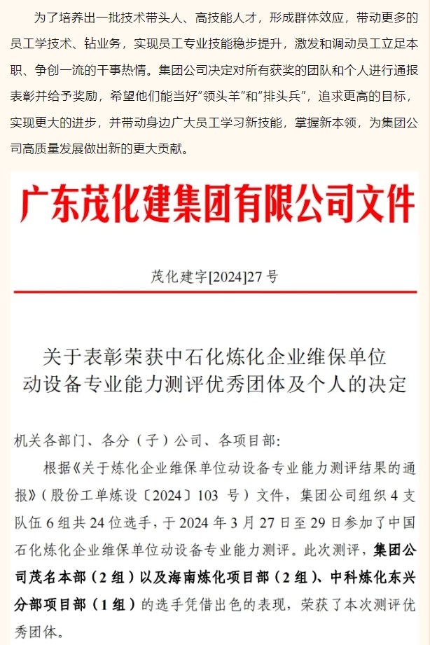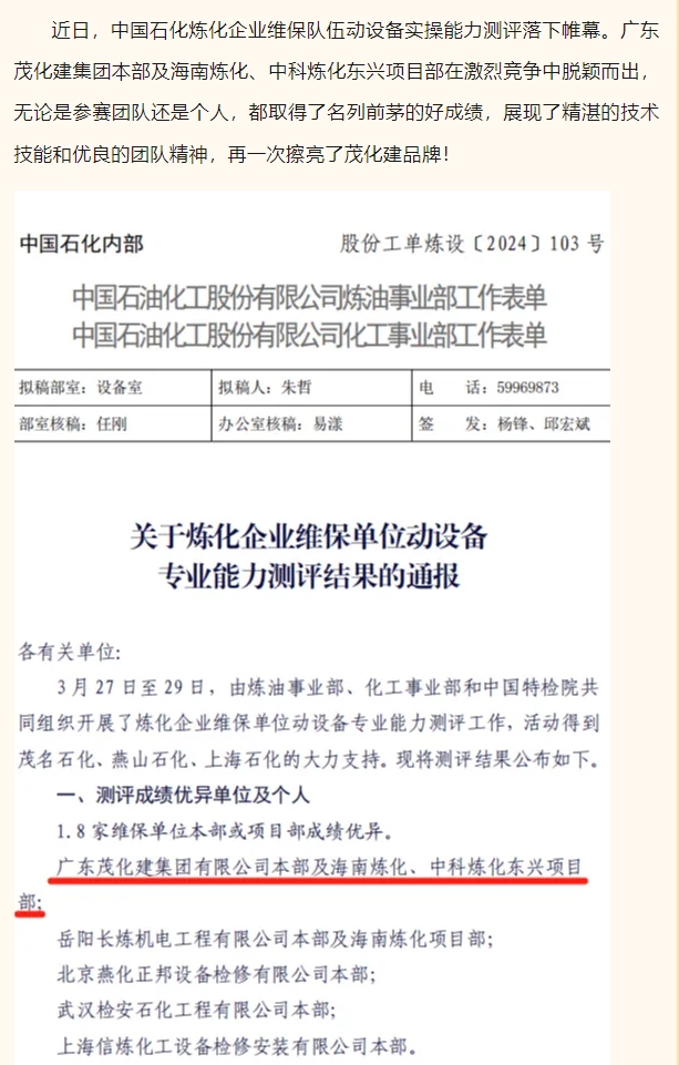 祝賀!茂化建在中石化煉化企業(yè)維保隊(duì)伍動(dòng)設(shè)備實(shí)操能力測評中成績優(yōu)異,名列前茅