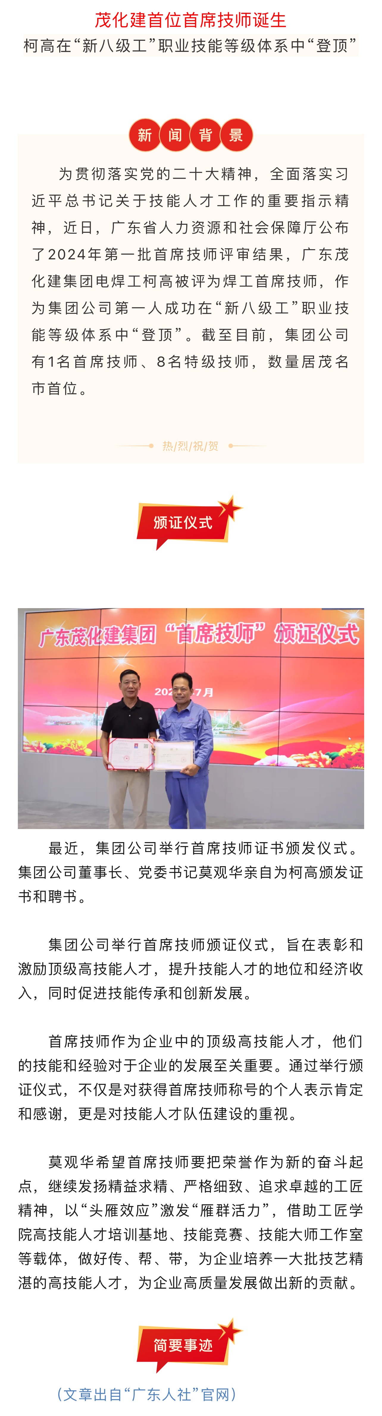 ?喜報(bào)|茂化建首位首席技師誕生!