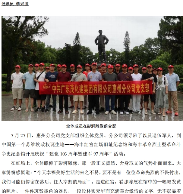惠州分公司黨支部開展慶祝“建黨103周年暨建軍97周年”活動