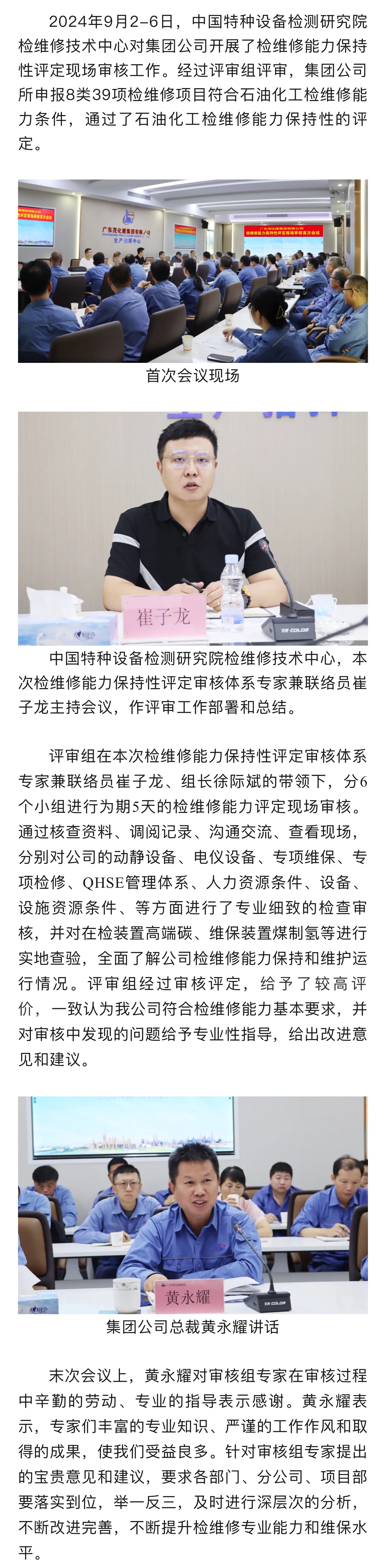 集團(tuán)公司檢維修能力保持性評(píng)定現(xiàn)場審核工作圓滿完成