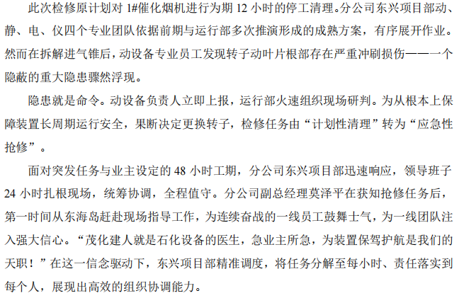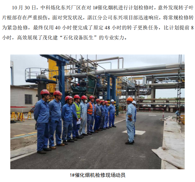 湛江分公司東興項(xiàng)目部:疾速 40 小時,打贏中科煉化催化煙機(jī)搶修攻堅(jiān)戰(zhàn)