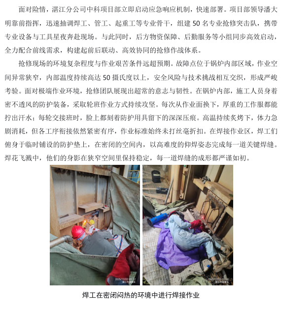 湛江分公司中科項(xiàng)目部余熱鍋爐搶修