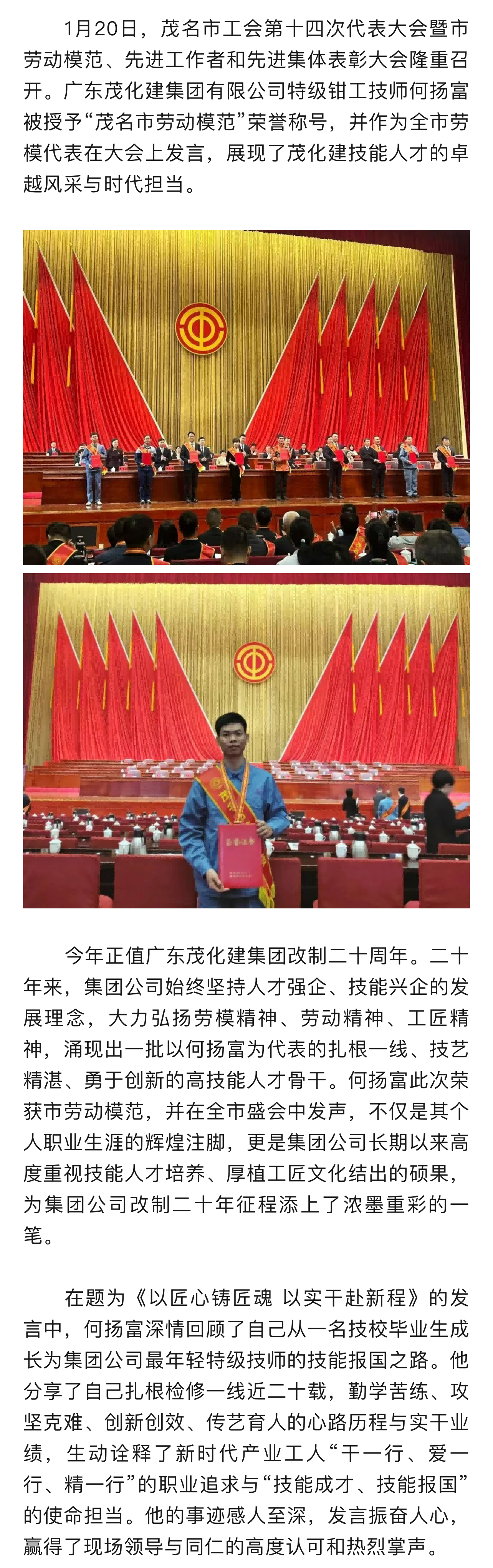 喜報!廣東茂化建集團(tuán)特級技師何揚(yáng)富榮獲“茂名市勞動模范”榮譽(yù)稱號